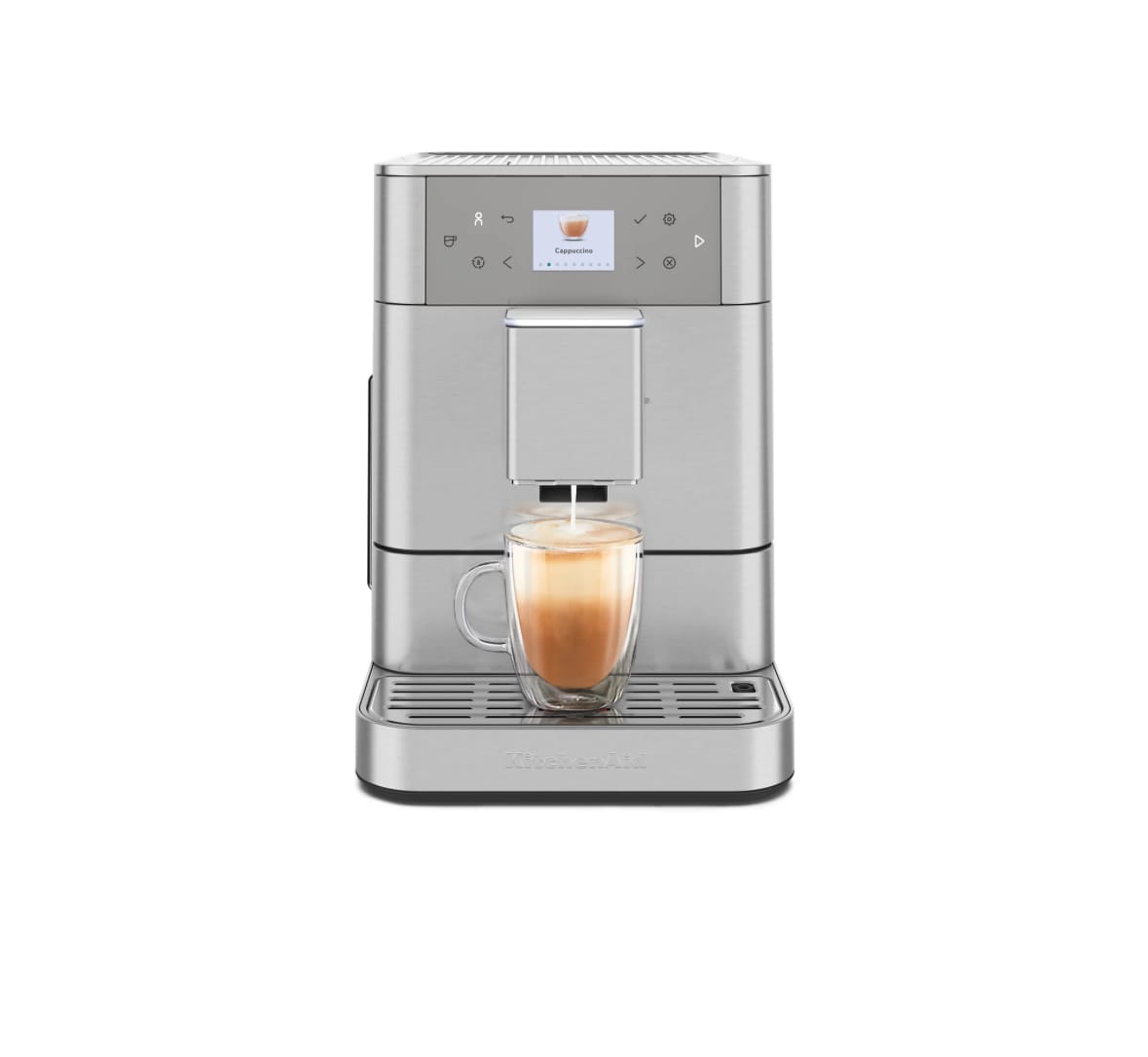Conçue pour les amateurs de café exigeants, la KITCHENAID 5KES8556ESX est un expresso-broyeur automatique alliant technologie de pointe, design robuste et silence de fonctionnement, grâce à sa certification Quiet Mark. Elle offre un excellent équilibre entre variété, personnalisation et facilité d’usage, dans un format élégant et discret. Avec ses 10 recettes disponibles (6 café, 4 lactées) et sa carafe à lait intégrée, elle permet de préparer cappuccino, caffelatte ou lait chaud en un seul geste. Le grand écran couleur tactile et ses 4 profils utilisateur rendent chaque expérience café fluide et intuitive, que ce soit pour un usage personnel, en couple ou en famille.
